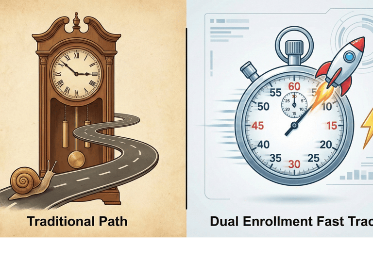 Fast-track your future and freeze your costs. Dual Enrollment lets you "double dip" your academics, earning high school and college credit for the exact same work. Save thousands in Tuition and Fees, and walk onto a college campus with your freshman year already finished.